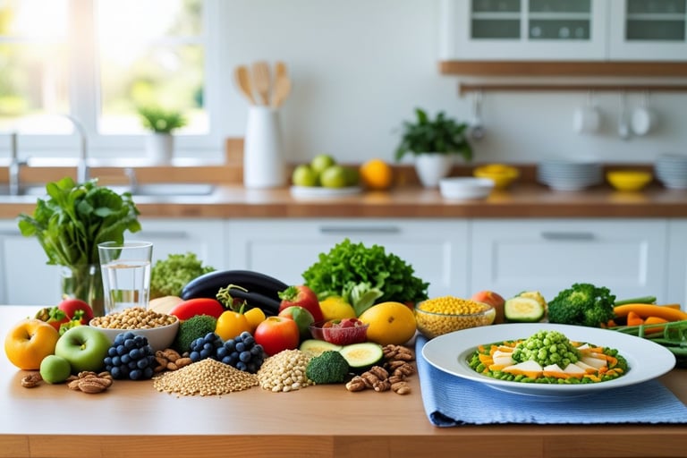 Balance means including variety across food groups without eliminating entire categories unless medically necessary. The healthy eating plate concept offers a practical framework: fill half your plate with vegetables and fruits, one quarter with whole grains like oats or brown rice, and one quarter with protein sources.