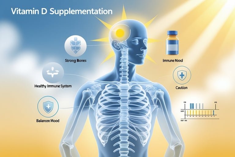 Supplementing with vitamin D affects bone health, muscle function, immune response, and certain disease risks; dose, baseline level, and individual factors determine benefit and safety. Pay attention to form (D3 vs D2), daily dose, and monitoring to balance effects and avoid harm.